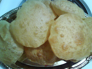 Puri is most commonly served at breakfast.Puri can be served with halwa, potato masala, korma, chana masala.Puri is also very delicious with special mixed vegetable which is prepared during puja ,a special kind of dessert prepared with rice, milk, sugar.