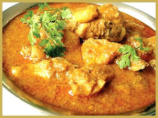 Chicken Curry is a common delicacy in India. A typical curry consists of chicken in an onion and tomato-based sauce, flavoured with ginger, garlic, chillies and a variety of spices, often including cumin, cinnamon, cardamom. Chicken curry is sometimes made with pre-made curry powder. Milk is sometimes added to decrease the spiciness.It's my grandma's recipe.